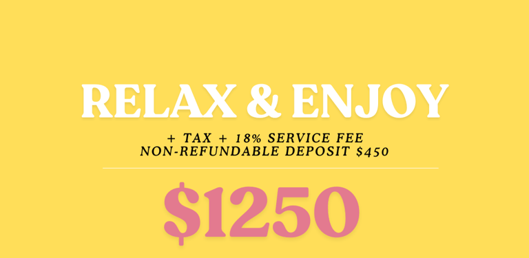 Please note: the deposit is part of the total payment. The remaining balance is due 8 days before the event.