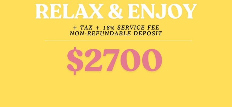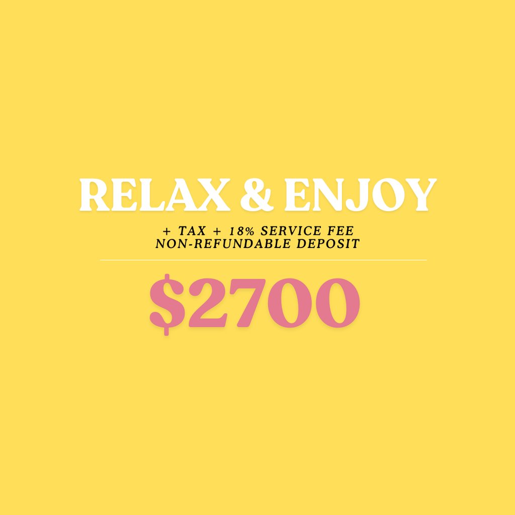 Please note: the deposit is part of the total payment. The remaining balance is due 8 days before the event.